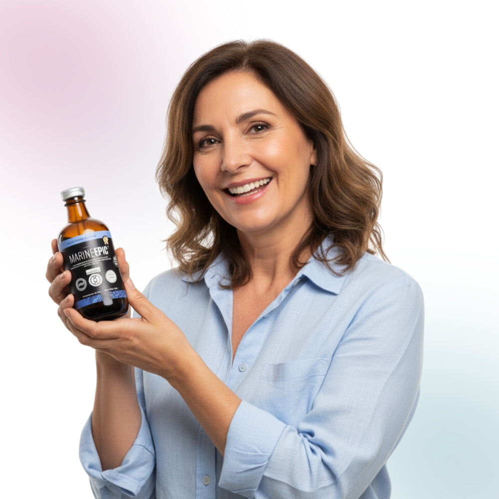 Marine Epic® reemplaza múltiples productos: antioxidantes, suplementos para la energía mitocondrial, detox hepático, reguladores del sistema inmune, zinc, vitaminas complejo B, especialmente B9 y B12.